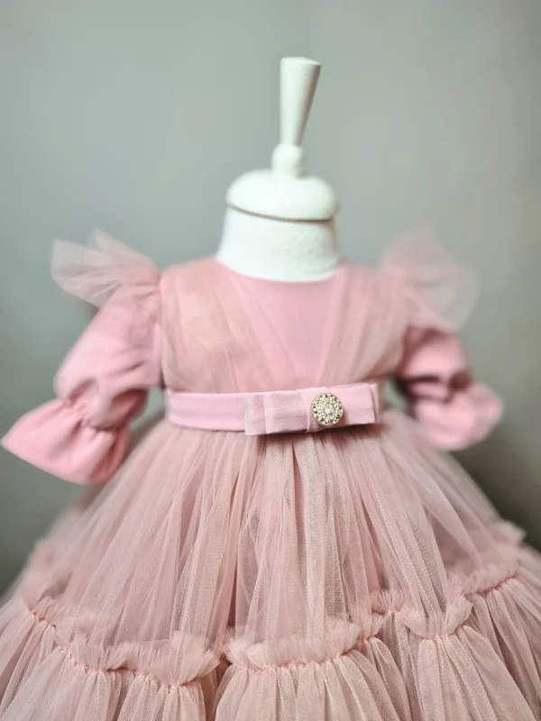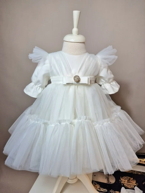 Rochiță Botez Amedeea pentru fetițe – Elegantă și delicată din tulle fin