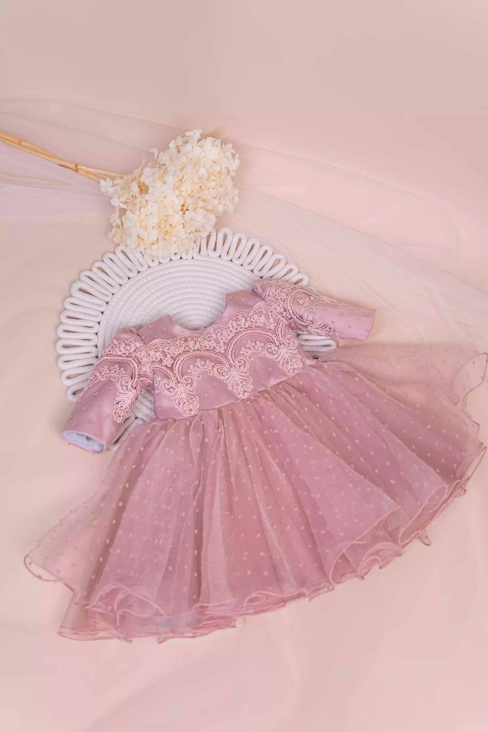 Rochița de botez Nataly aduce eleganță, confort și rafinament micuței tale, perfectă pentru momente speciale, cu detalii fermecătoare și design practic.