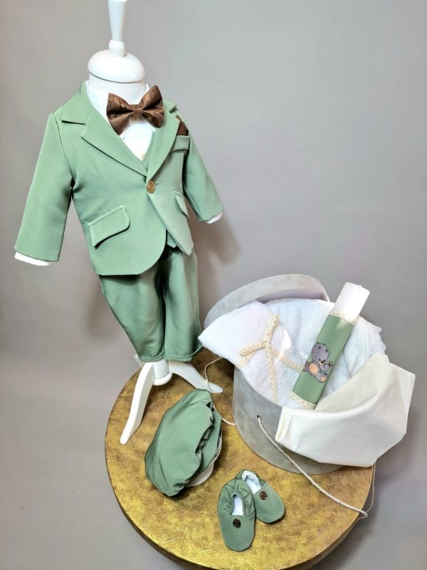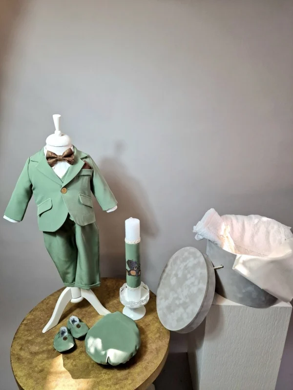 Setul include toate piesele necesare pentru a crea o ținută impecabilă și un decor deosebit pentru botez. De la costumul elegant al micuțului până la accesoriile ceremoniale, fiecare element este ales pentru a contribui la o imagine unitară, sofisticată și armonioasă.
